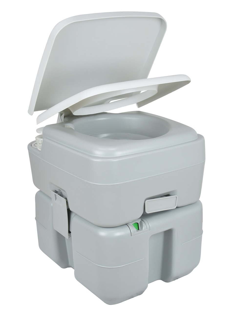 Přenosné WC s kapacitou vodní nádrže 10 l a odpadní nádrže 20 l.