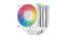 Chladič pro procesory Intel i AMD je vybaven šesti heatpipe a dvěma 120 mm ventilátory s ARGB podsvícením a PWM regulací. K připojení slouží 4pin PWM konektor a 3pin ARGB konektor.