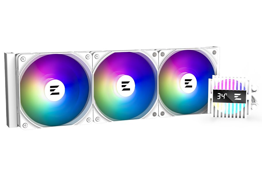 Vodní chladič určený pro chlazení široké škály procesorů. Vyznačuje se vysokou kvalitou, výkonem a spolehlivostí. Disponuje třemi 120 mm velkými ventilátory s ARGB podsvícením. Odolné opletené hadice zaručují díky dostatečně širokému průměru plynulý průtok chladicí kapaliny. Chladič je dodáván se speciální teplovodivou pastou ZM-STC10 pro maximální odvod generovaného tepla.