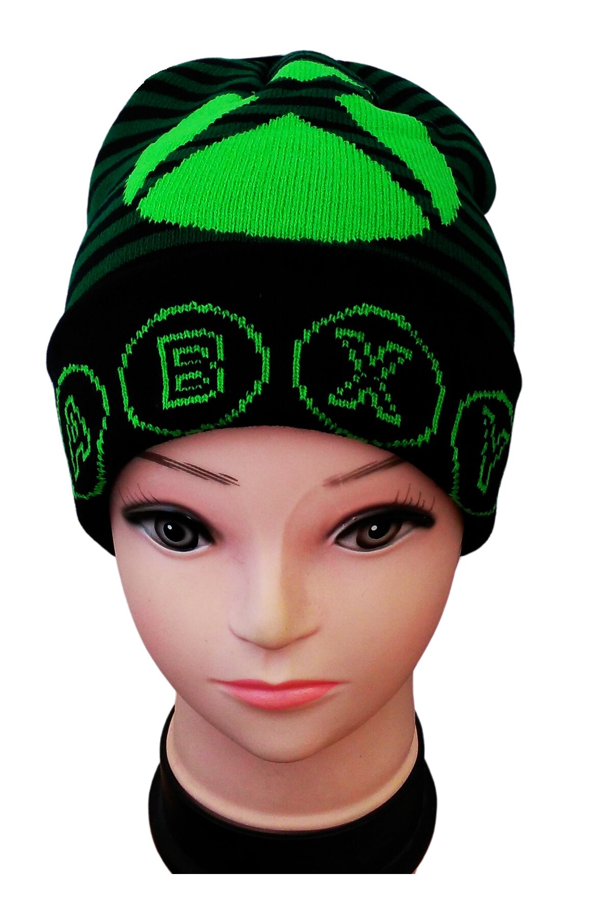 Chlapecká čepice XBOX zimní s proužky černozelená, velikost: 54