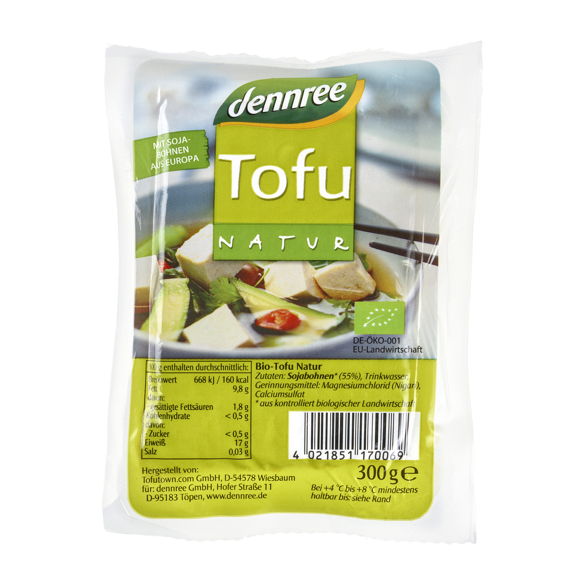 SÓJOVÉ boby 55 % voda, zpevňující látky: chlorid hořečnatý (Nigari), síran vápenatý. produkt kontrolovaného ekologického zemědělství