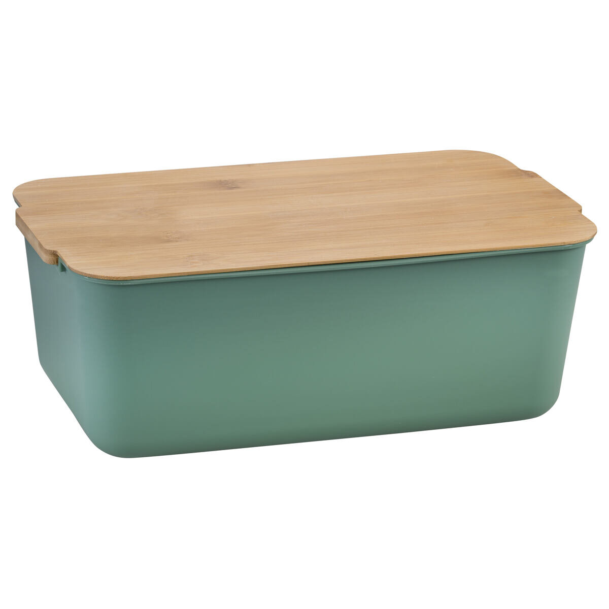 Chlebník s prkénkem, 31 x 18,5 x 12,5 cm, zelený KESPER Tento elegantní chlebník s prkénkem je praktickým pomocníkem do každé kuchyně. Je vyroben z odolného plastu (PP) a disponuje odnímatelným, oboustranným prkénkem z FSC®-certifikovaného bambusu. Slouží nejen jako úložný box na pečivo, ale...
