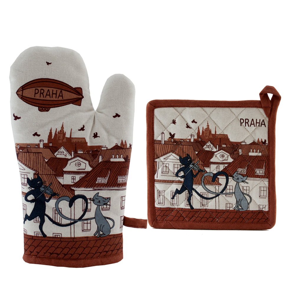 Kuchyňská sada - chňapka a podložka, kočky ve městě - Praha