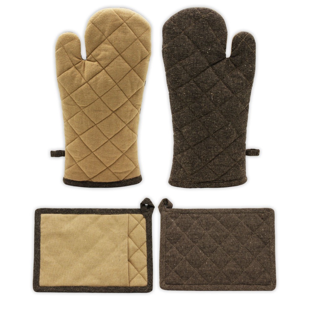 Chňapka s magnetem a podložkou s kapsou 18 x 32 + 18 x 25 cm, čokoládová + režná z recyklované bavlny