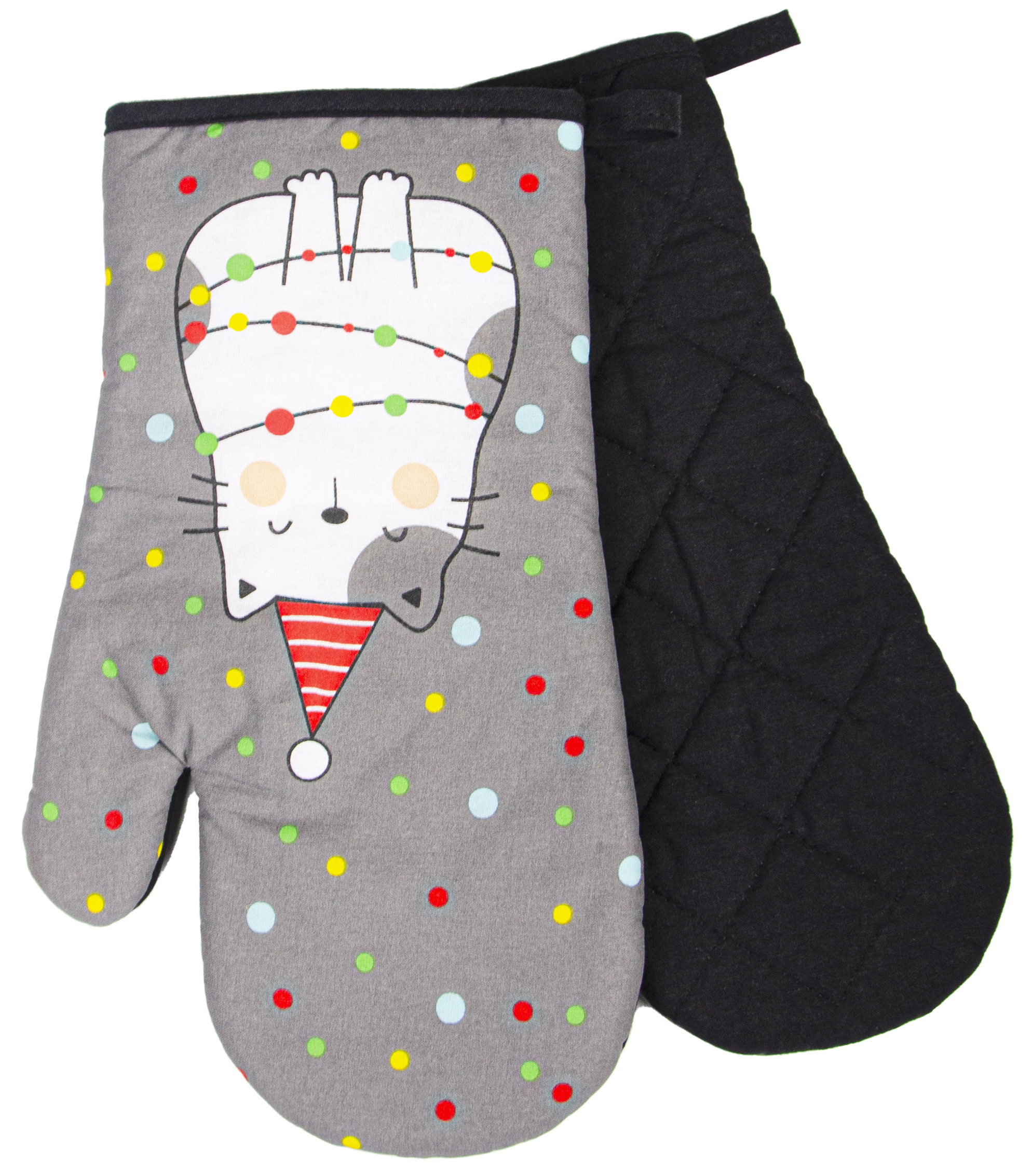 Kuchyňské rukavice chňapky HAPPY FRIENDS kočka šedá/černá 19x30 cm Essex