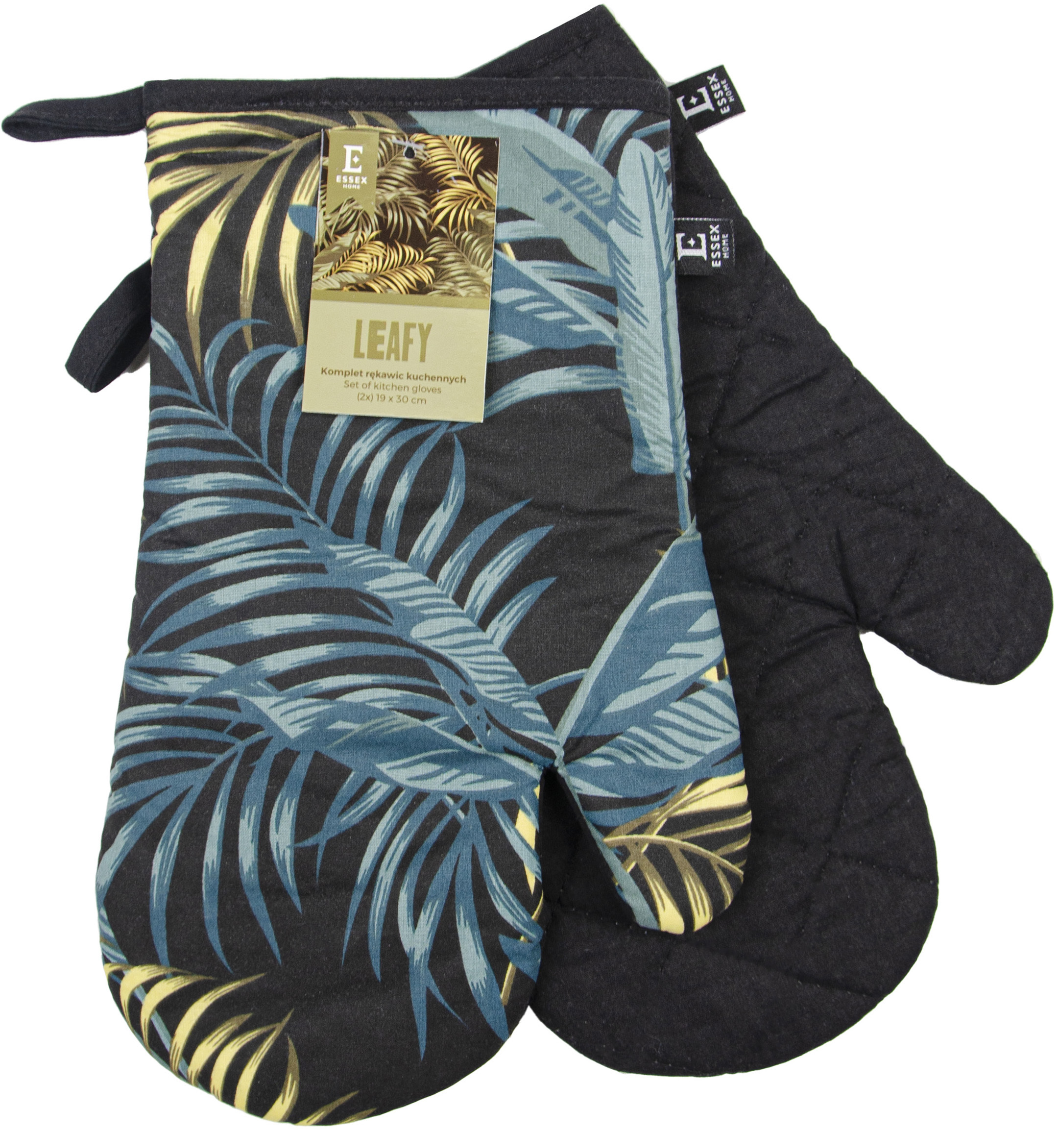 Kuchyňské bavlněné rukavice - chňapky LEAFY černá 100% bavlna 19x30 cm Essex
