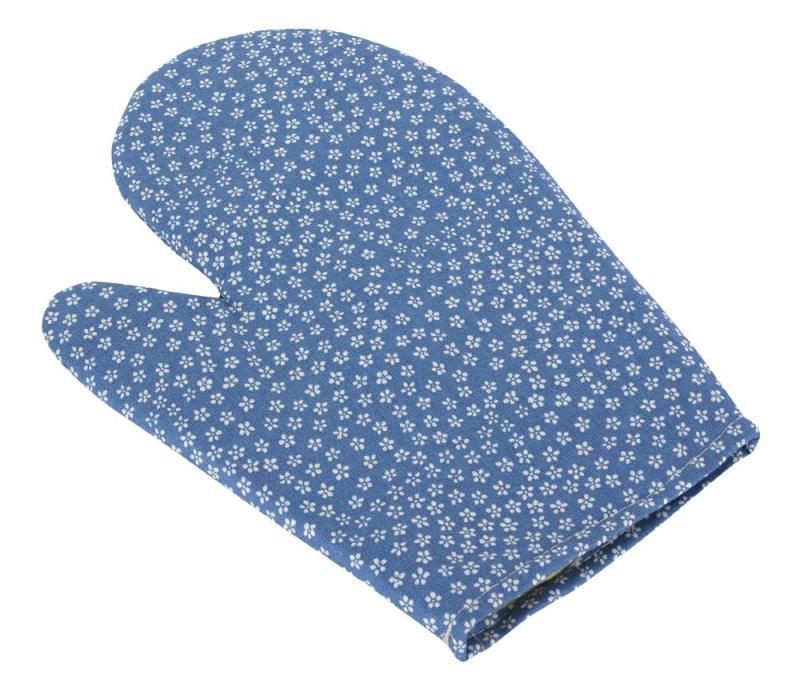 Kuchyňská chňapka - bílá kytička na modré - chňapka 28x18 cm