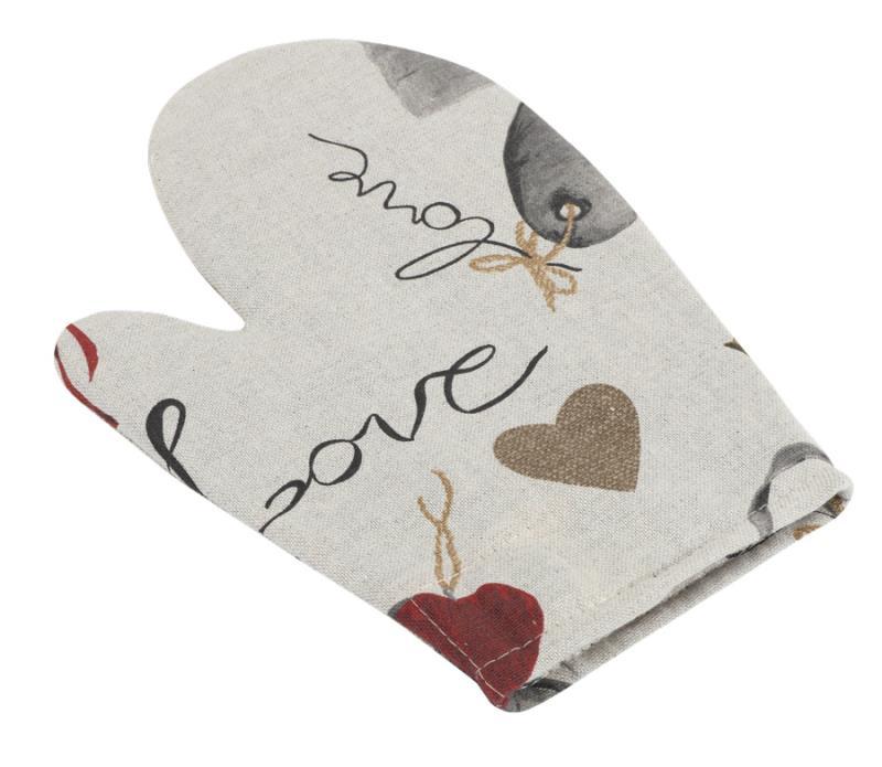 Kuchyňská chňapka - zavěšená srdce na režné - chňapka 28x18 cm