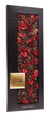 Hořká čokoláda s kakaovými boby, višněmi, brusinkami a špetkou skořice