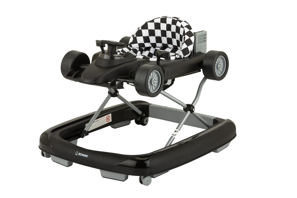 Bomimi AJAX chodítko 3v1Vhodné pro děti od 6 měsíců do 12 kg PARAMETRY:Rozměry / rozložené (cm) : KLASICKÉ CHODÍTKO: výška max./ opěrka sedátka: 54 cmvýška max. / madlo : 40 cmvýška spodní část sedátko : 28 cmROZMĚR ZÁKLADNA: 63 x 71 cmAKTIVITY CHODÍTKO:výška madla : 45 cmrozpětí kol : 43 cm / přední50 cm / zadnídélka základy : 62 cmRozměry / složené (cm) : v. 33 * š. 63 * d. 71Hmotnost : 3,9 kgHmotnost balení : 4,98 kgNosnost : 12 kgIdeální pro první krůčky.Krásné chodítko pro malé závodníky.Tři způsoby využití: 1. CHODÍTKO - jako klasické chodítko a aktivity centrum2. Po odstranění zadní lišty změníte funkci CHODÍTKA - dítě může nyní tlačit chodítko před sebou. Kolečka regulují po zatížení rychlost. Chodítko dodává pocit opory.3. AKTIVITY CHODÍTKO - po odstranění rámu, lze chodítko změnit na AKTIVITY CHODÍTKO, které bude vaše děťátko povzbuzovat s prvními krůčky a pomáhat mu při rozvíjení rovnováhy a koordinace. VYBAVENÍ CHODÍTKA: AKTIVITY pult s volantem s klaksonem / aktivity pult vyžaduje 2x alkalické 1,5 Voltové baterie (nejsou součástí výrobku), aktivity pult nabízí různé melodie, aby malému závodníkovi cesta pěkně ubíhala2x ZPĚTNÁ zrcátka / pro bezpečnou jízdu4x SPORTOVNÍ KOLEČKAPOLSTROVANÉ SEDÁTKO ve sportovním vzhledu s vyztuženou opěrkou zadPozn. Součástí je i sada samolepek pro dozdobení „závoďáku“VÝŠKOVĚ nastavitelné sedátko / 3 POZICESnímatelný potah sedátka - lze prát v ruce ve studené voděDÁLE JE CHODÍTKO VYBAVENO : 2 x Zadní pevná kolečka - zadní kolečka po zatížení snižují rychlost chodítka2 x Přední otočná kolečka6 x gumová koncovka zabraňující převrácení nebo pádu ze schodůCHODÍTKO se SNADNO skládá, po složení má chodítko kompaktní rozměry pro snadné uložení.Dětské chodítko bylo vyrobeno v souladu s evropskou normou EN 1273:2020 + EN 71-1-2-3.UPOZORNĚNÍ: Při použití jako klasické chodítko je výrobek určen pro děti, které umí sedět bez pomoci, přibližně od stáří 6 měsíců. Není určeno pro děti, které umí chodit samy nebo jejichž hmotnost je větší než 12 kg.VAROVÁNÍ : Nikdy nenechávejte dítě bez dozoru. Zabraňte přístupu ke schodišti, schodům a na nerovný povrch.