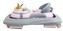 PopisTECHNICKÁ SPECIFIKACE: Vhodné pro děti od 6 měsíců do 12 kg. Maximální nosnost : 12 kg. Hmotnost Chodítko : 12kg Rozměry : / rozložené (cm) : v.55 * d.78 (rám)/58 (sedátko) * š.63 (rám)/46 (sedátko) / složené (cm) : v.27 * š.63 * d.78 Potah: 100% Měkký polyester VLASTNOSTI:BALENÍ OBSAHUJE: 2x otočná kolečka,2x pevná kolečka, 6x speciální brzdičky - brzdný systém proti sjetí chodítka ze schodů Součástí chodítka je hudební aktivity panel, který rozvíjí sluchové, hmatové a koordinační dovednosti dítěte. Hrací pult vyžadujme 2xAA baterie (nejsou součástí). Chodítko lze plně složit, aby bylo více kompaktní pro jeho případné uložení. Bezpečnostní pojistka proti samovolnému složení. Zadní kola snižují otřesy, navíc jsou vybavena systémem, který zastaví chodítko, pokud by se centrum těžiště přeneslo na zadní kola. Výšku sedátka lze nastavit do 3 pozic dle potřeb dítěte. Sedátko doplněno o praktické držátko. Vysoká, vyztužená opěrka zad pro maximální podporu dětských zádíček. Polstrování lze sejmout a prát v ruce. ELEKTRONICKÝ PANEL:FUNKCE: A. Roztomilá otočná včelička. B. Mlýnek ve tvaru kytičky otočný o 360°. C. Po zmáčknutí berušky se rozblikají světýlka za zvuku hudby. D. Hrací pianko. E. Pohyblivý roztomilý červík, pohybuje se dopředu / dozadu. F. Přepínač. G. Otočný roller. Pozn. Hrací pult chodítka vyžaduje 2 alkalické 1,5 Volt baterie, typu AA (nejsou součástí výrobku).Určeno pro děti, které umí sedět bez pomoci, přibližně od stáří 6 měsíců. Není určeno pro děti, které umí chodit samy nebo jejichž hmotnost je větší než 12 kg.VAROVÁNÍ : Nikdy nenechávejte dítě bez dozoru. Zabraňte přístupu ke schodišti, schodům a na nerovný povrch.
