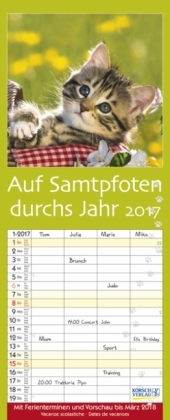 Praktischer Familientimer mit 4 Spalten und niedlichen Katzenfotos. Mit Ferienterminen. číst celé