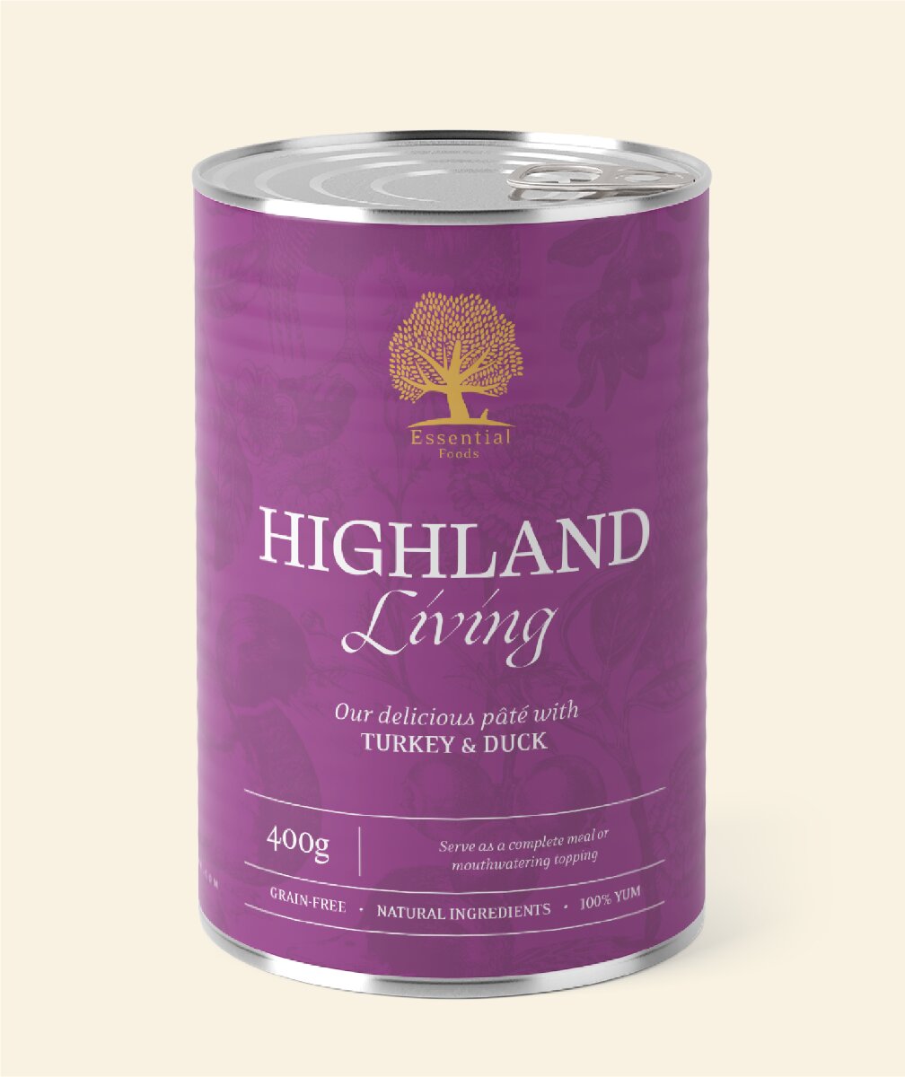 Složení:Krůtí maso (26 %), kachní maso (21 %), krůtí srdce (18 %), mrkev (2 %), hrášková mouka (2 %), brusinky (1 %), borůvky (1 %), goji (1 %), ostružiny (1 %), lignocelulóza, uhličitan vápenatý, mořská řasa (0,2 %), zelený čaj (0,2 %), měsíček lékařský (0,2 %), zázvor (0,2 %), spirulina (0,2 %).