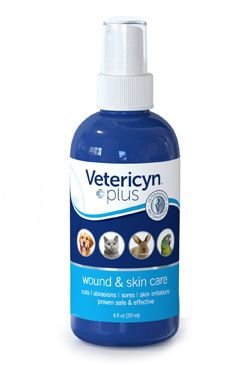 Indikace: Vetericyn Wound and Skin Care je určen pro OTC management kožních abrazí, lacerací, menšího podráždění, řezných poranění a neporušené kůže. Je bezpečný při použití u všech druhů zvířat. Pokyny k použití: Odsuňte přebytečnou srst z místa rány, v případě potřeby ji sepněte. Nastavte trysku spreje. Postižené místo saturujte. Je-li nutno použít krytí, saturujte jej Vetericynem při každé jeho výměně. Opakujte 3-4krát za den, dokud se rána nezahojí. Oplachování není nutné. Rychlejšího zahojení lze dosáhnout, jestliže se rány vyčistí a udržují se ve vlhkém prostředí. Přípravek je bezpečný při použití v okolí tlamy, nosu, uší a očí. Složky: Účinné: kyselina chlorná (HClO) (0,0120%) Neúčinné: elektrolyzovaná voda (H2O), chlorid sodný (NaCl), fosfáty, chlornan sodný (NaClO)