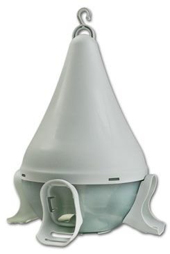 Toto krmítko je navrženo s ohledem na maximální funkčnost i estetiku. Svým tvarem připomíná kapku visící z větve, díky čemuž skvěle zapadne do přírodního prostředí. Můžete jej pohodlně zavěsit třeba do voliéry nebo na strom. Pojme až 1,5 kg sypkého krmiva, a tak nabízí dostatek zásoby pro více ptáků najednou.