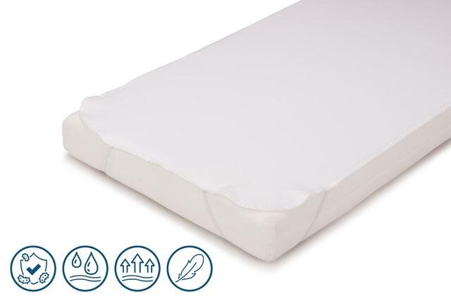 Měkký bavlněný chránič Jersey je velmi příjemný na dotek, dobře saje vlhkost a zároveň zůstává prodyšný. Miminko se bude cítit pohodlně a příjemně. Matrace zároveň zůstane chráněna před protečenou plenou nebo nehodami. Možné používat samostatně nebo jako nepromokavý podklad pod prostěradlo.