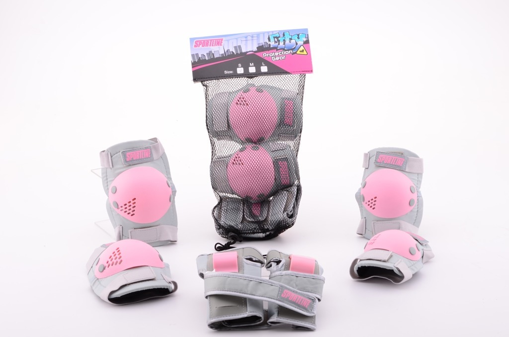Sportovní chrániče pro holky velikost S, M a L. Obsahuje hrániče na kolena, lokty a dlaně. Růžovo-šedá. číst celé