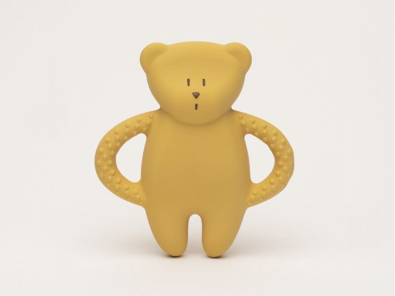 Kousátko MOONIE podobě roztomilého medvídka z přírodního kaučuku bylo pečlivě navrženo tak, aby zklidnilo bolavé dásně během prořezávání zoubků a zároveň poskytovalo bezpečný a příjemný smyslový zážitek. Tvar a velikost kousátka umožňují snadné držení malými dětskými ručičkami, různorodé textury lákají dítě ke zkoumání. Hračka je ručně malovaná netoxickými potravinářskými barvami. Kousátko z přírodního kaučuku je přirozeně odolné vůči bakteriím a plísním a snadno se čistí, stačí jej omýt teplou vodou a jemným mýdlem. Kousátko je plně biologicky odbouratelné. S ohledem na udržitelnost životního prostředí je výrobní proces hračky certifikovaný podle přísných ekologických standardů. Neobsahuje BPA, ftaláty ani nitrosaminy. Rozměry: 12 x 12 cm Vhodné pro děti od narození.