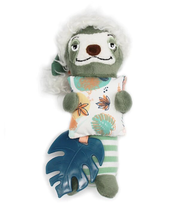 Táto malá hrkálka s plyšovým leňochodom vydáva príjemný zvuk zvonkohry, ktorý upokojí vaše bábätko. Jeho malý šuštiaci vankúšik a hryzátko na zúbky v tvare listu ponúkajú úplný zmyslový zážitok. Hrkálku leňochod môžete zavesiť na postieľku, kočík, hrazdičku alebo ju vziať kamkoľvek, aby ste dieťatko zabavili.
