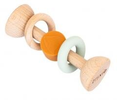 Zabawnie zaprojektowana z myślą o małych rączkach, ta grzechotka jest idealna dla noworodków i maluszków. Każdy nowy przyjaciel oferuje różnorodne bodźce sensoryczne dzięki miękkiemu silikonowi i gładkiemu drewno bukowemu, a zaokrąglone krawędzie oraz radosne kolory przyciągają wzrok dziecka. Grzechotka wydaje delikatny, satysfakcjonujący dźwięk, a silikonowe elementy świetnie nadają się do gryzienia, co wspiera rozwój umiejętności manualnych oraz koordynacji ręka-oko. Producent: Trixie Baby Skład: Drewno bukowe FSC(R) - 100%, silikon Rekomendowany wiek: 0m+