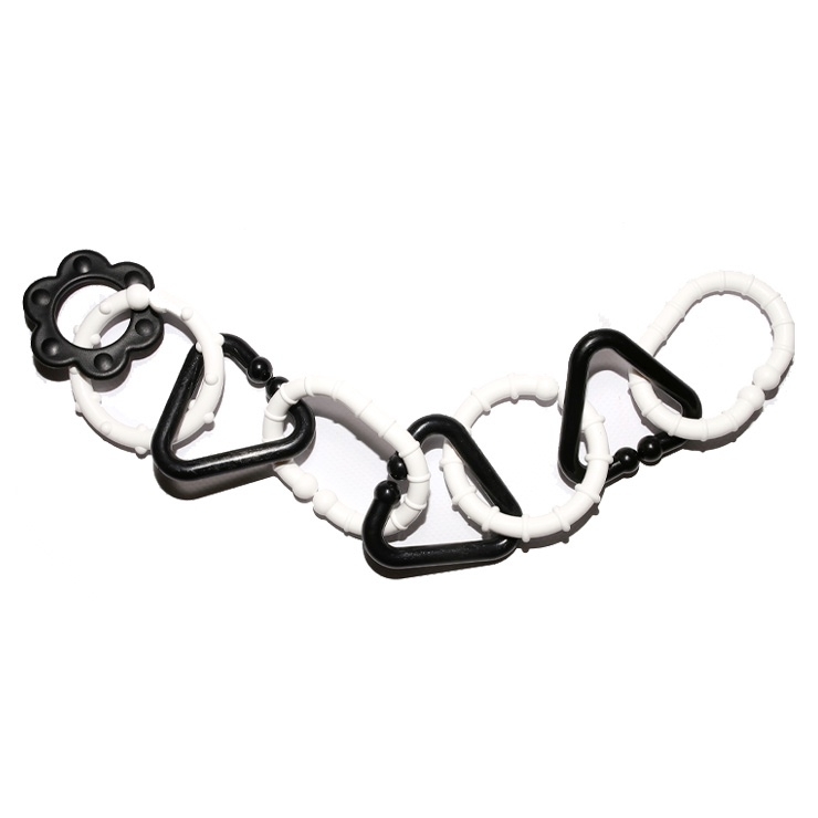 Plastový řetěz černobílý 8 tvarů je navržen tak, aby stimuloval smysly vašeho dítěte již od narození. Černobílá kombinace barev přitahuje pozornost a podporuje rozvoj zraku malých dětí, zatímco rozmanité tvary pomáhají s jemnou motoričností a poznáváním.