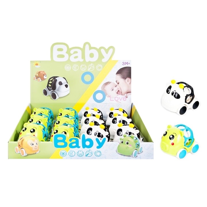 Hračka má uvnitř kouli s chrastítkem, která během pohybu vesele chrastí. Rozvíjí zvědavost, myšlení a motoriku dítěte, je dodávána ve dvou provedeních: prase a kráva. Během hraní vydává zvuky, které dítě povzbuzují ke hře!