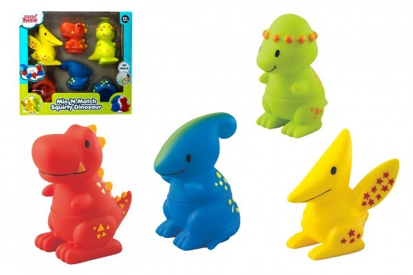 Tato sada obsahuje 4 gumové, stříkací dinosaury, které nejsou jen tak obyčejní - jejich těla jsou rozdělitelná, takže si děti mohou snadno sestavit dinosaura podle své fantazie. Hračka je perfektní nejen na hraní doma, ale i do vany, kde se díky stříkání vody hry ještě více rozveselí.