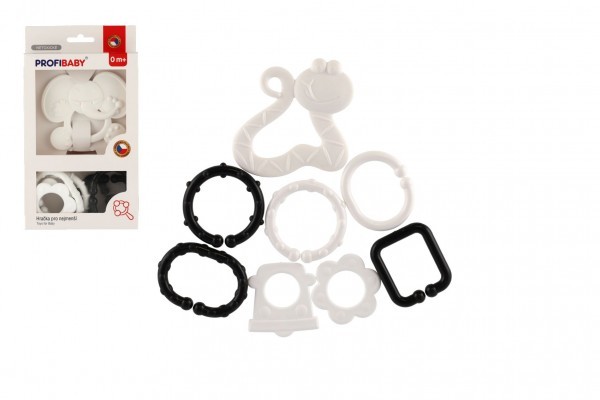 Kousátko zvířátko + přívěsky plast černobílé 3 druhy v krabičce 13x23x3cm 0m+