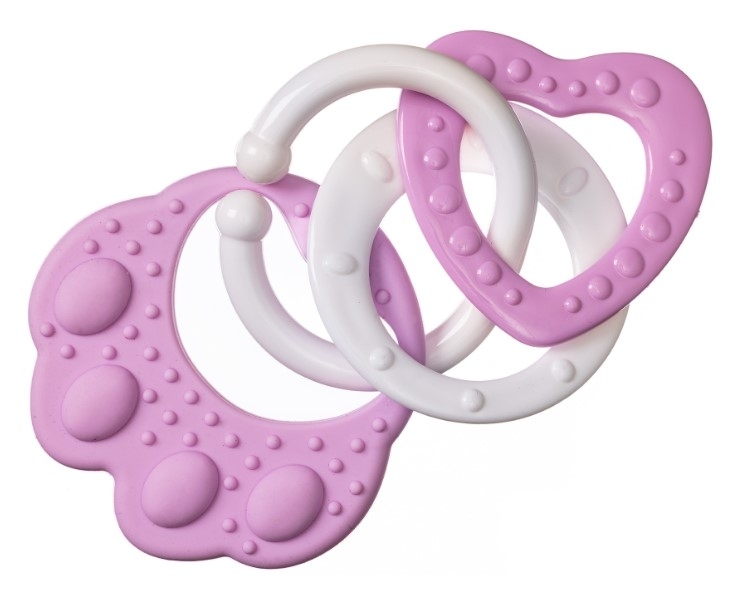 Silikonové kousátko s kroužky Medvědí tlapka - růžovo/bílé, 7 x 7cm