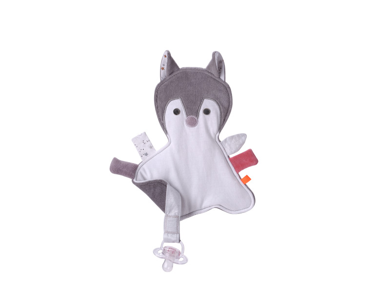 Jemná hračka do postýlky pro příjemné usínání vašeho miminka má úchyt pro přichycení šidítka.