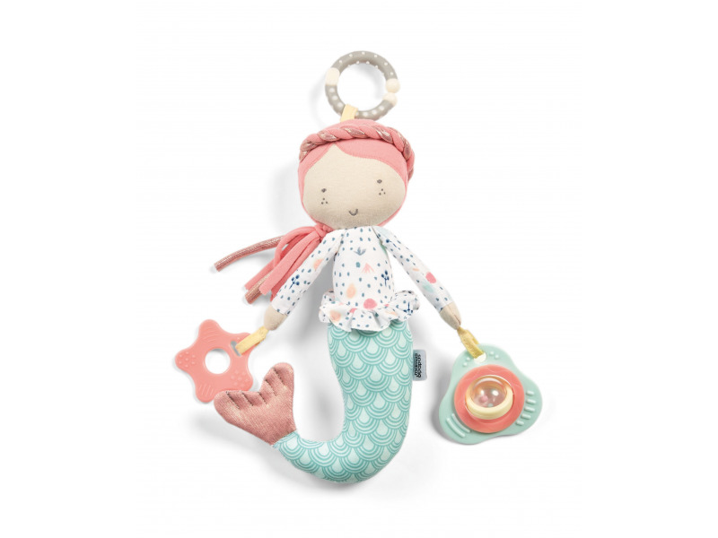 Hračka v podobě krásné mořské panny zabaví vaše miminko! Textilní hračku ve jemných pastelových barvách snadno připevníte ke kočárku, autosedačce či postýlce. Hračka při pohybu cinká, některé části šustí a kousátka uleví citlivým dásním při prořezávání prvních zoubků. Vhodné pro děti od narození. číst celé