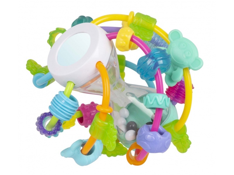 Playgro - Zábavný míček pastelový je ideální pro malé ručky, které snadno uchopí, zatřesou a kutálí. Texturované kousací korálky jsou perfektní pro zmírnění bolesti při prořezávání zoubků, zatímco zrcátko odráží světlo a obrazy, čímž zvyšuje sebepoznání vašeho malého. Rachotící a točící se korálky nejen stimulují sluchové dovednosti, ale také učí vaše dítě o příčině a následku.