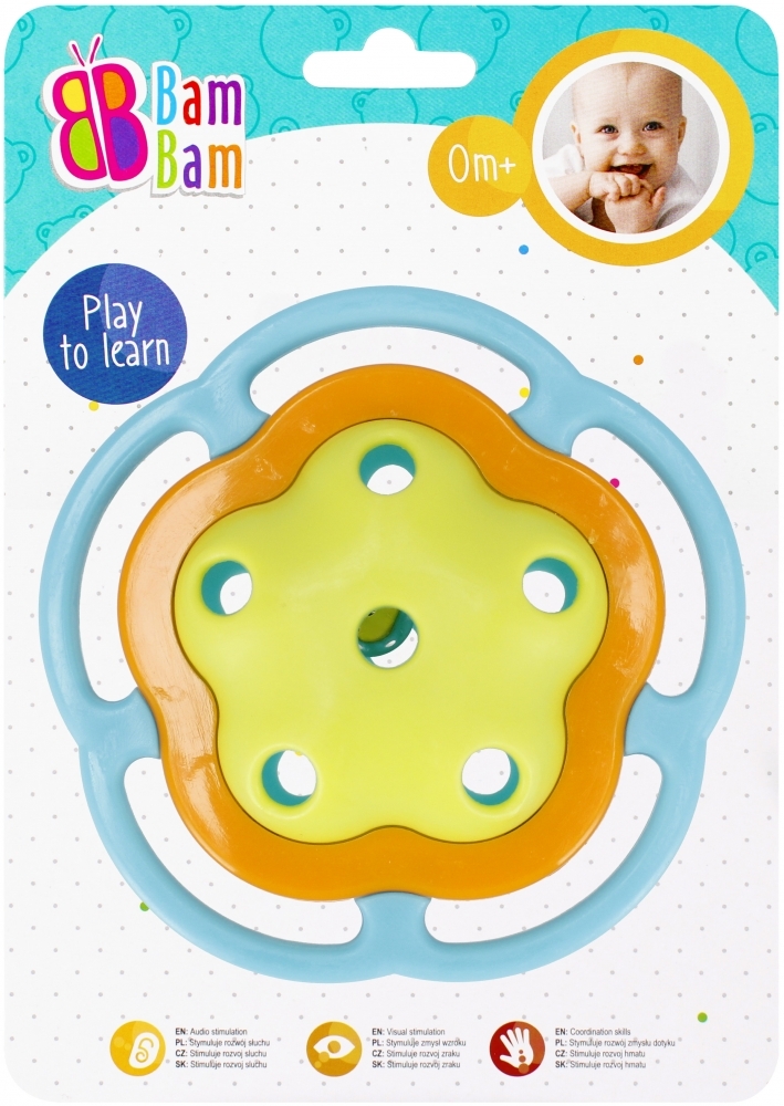 GRZECHOTKA KWIATUSZEK stosowna już od narodzin dziecka. W intensywnej kolorystyce, o zróżnicowanej fakturze materiałów jak i różnorodnej formie. Posiada elementy interaktywne zachęcające malucha do zabawy, stymulują rozwój jego zmysłów wzroku, słuchu oraz zdolności motorycznych. Uchwyt gwarantuje łatwe chwytanie i utrzymanie grzechotki w małych rączkach. Dodatkowe elementy, jak dzwoneczek wewnątrz zabawki uatrakcyjniają zabawę, wspierając równocześnie rozwój zdolności manualnych i motoryki mniejszej. Wymiary/waga/baterie: wymiary produktu dł. x wys. x gł. cm : 10x10x4, wymiary opakowania dł. x wys. x gł. cm : 15x20x4, waga produktu bez opakowania kg : 0,04 kg, waga produktu w opakowaniu kg : 0,07 kg, nie wymaga zasilania bateriami. Zabawka przeznaczona dla dzieci w wieku: 0m . Pakowana na blistrze. W kartonie zbiorczym po 24 szt.