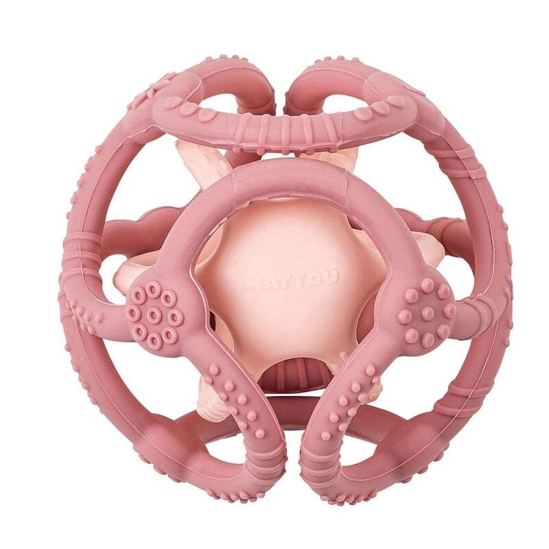 NATTOU Kousátko silikonové míč 2v1 bez BPA 10 cm růžová