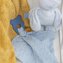 Dečka je z extra měkké látky ze 100% bavlny, která má otvor na snadné připevnění a vyjmutí kousátka. Kousátko má texturovaný povrch na masáž a zklidnění dásní během kousání ..