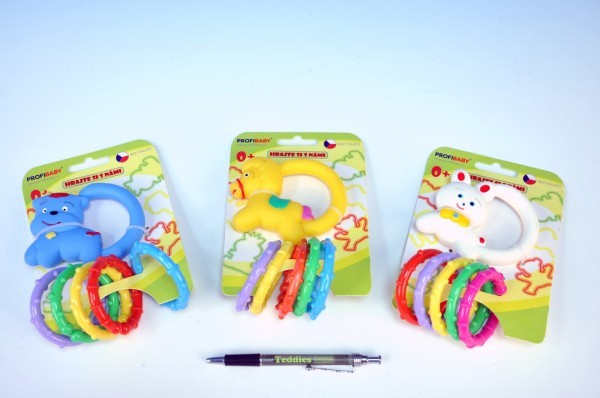 Chrastítko zvířátko 3 druhy na kartě od 0 měsíců - 1 kus