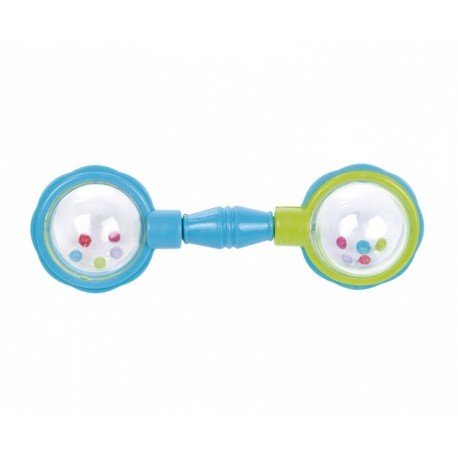 - Chrastítko ve tvaru činky s barevnými míčky