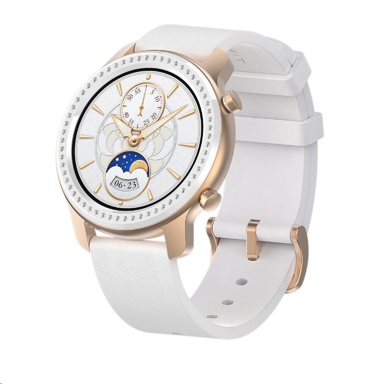 Chytré hodinky Xiaomi Amazfit GTR potěší každého, kdo si potrpí na eleganci a kvalitu, tento model je osázený třpytivými zirkony a zcela jistě zaujme každou ženu.. Robustní tělo hodinek je vyrobeno z lehké hliníkové slitiny o tloušťce 9,2 mm. Silikonový pásek je příjemný na nošení a vzhled ciferníku si můžete nastavit přesně tak, jak budete chtít.
