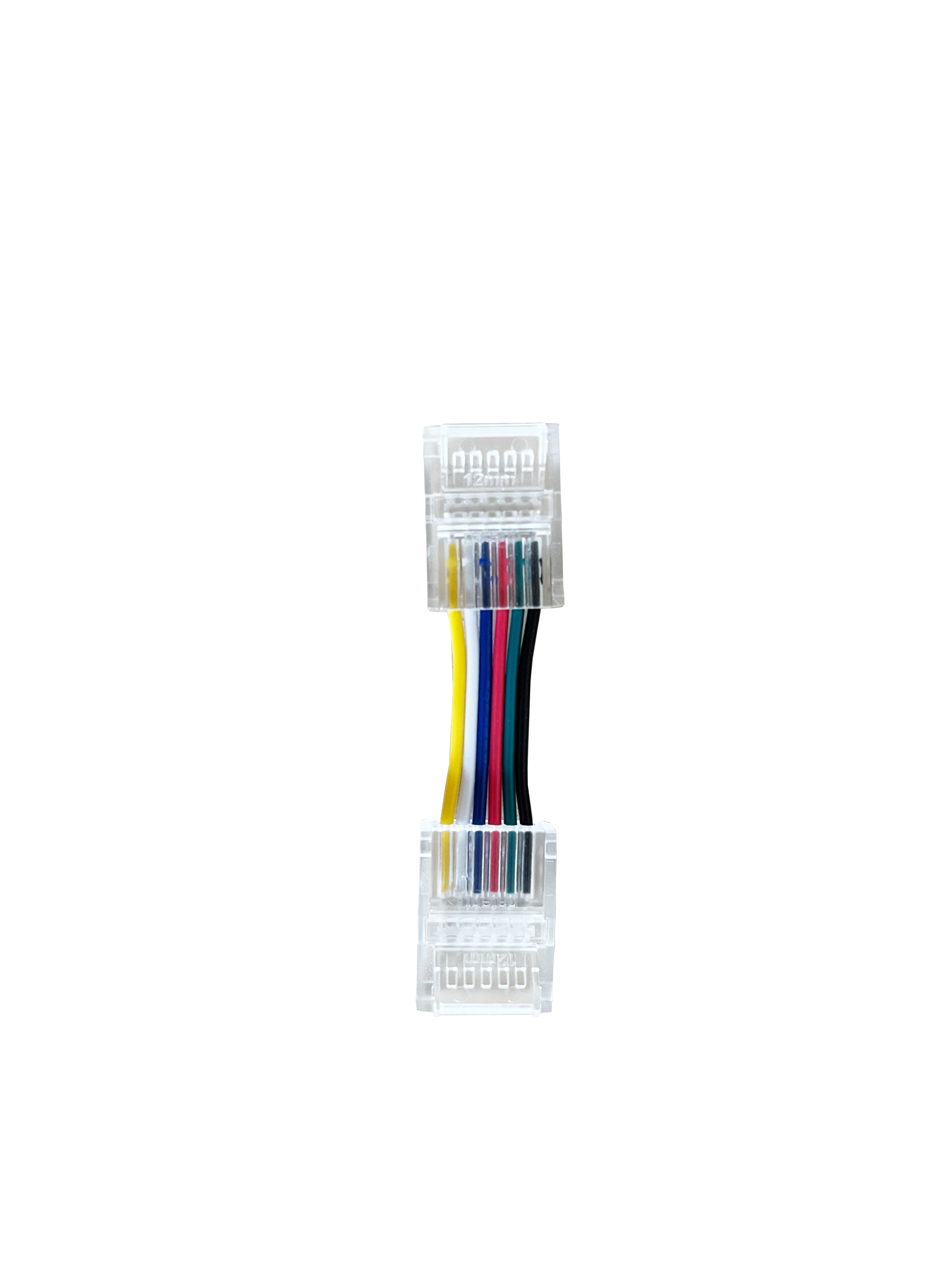 Tímto spojovacím konektorem snadno propojíte RGB+CCT (6 pinů) LED pásky o šíři 12mm bez nutnosti pájení.