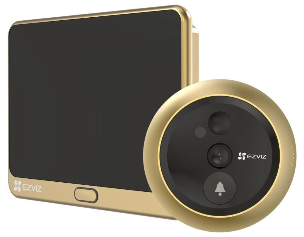 EZVIZ chytrý dveřní videotelefon DP2C/ Wi-Fi/ kamera 1080p/ H.265/ kukátko/ zvonek/ IR do 5 m/ PIR/ LCD 4,3"/ zlatý