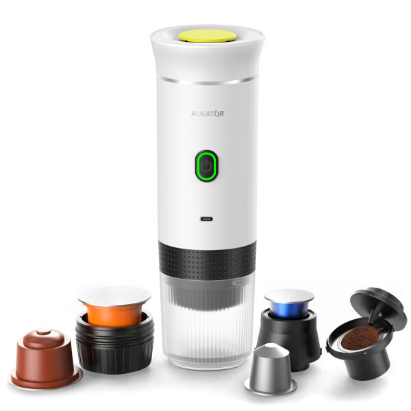 Součástí balení Aligator PortaCaffé jsou hned tři praktické adaptéry, díky kterým si můžete připravit kávu přesně podle své chuti. Adaptér pro Nespresso kapsle zajistí rychlou přípravu kvalitního espressa, a bez dalšího nepořádku. Adaptér pro Dolce Gusto kapsle umožňuje širší výběr nápojů - od espressa až cappuccino. Třetím řešením je adaptér po mletou kávu, který ocení každý milovník čerstvě namleté směsi. Výměna adaptérů je velmi snadná a intuitivní, takže přechod mezi různými typy kávy trvá jen pár vteřin.
