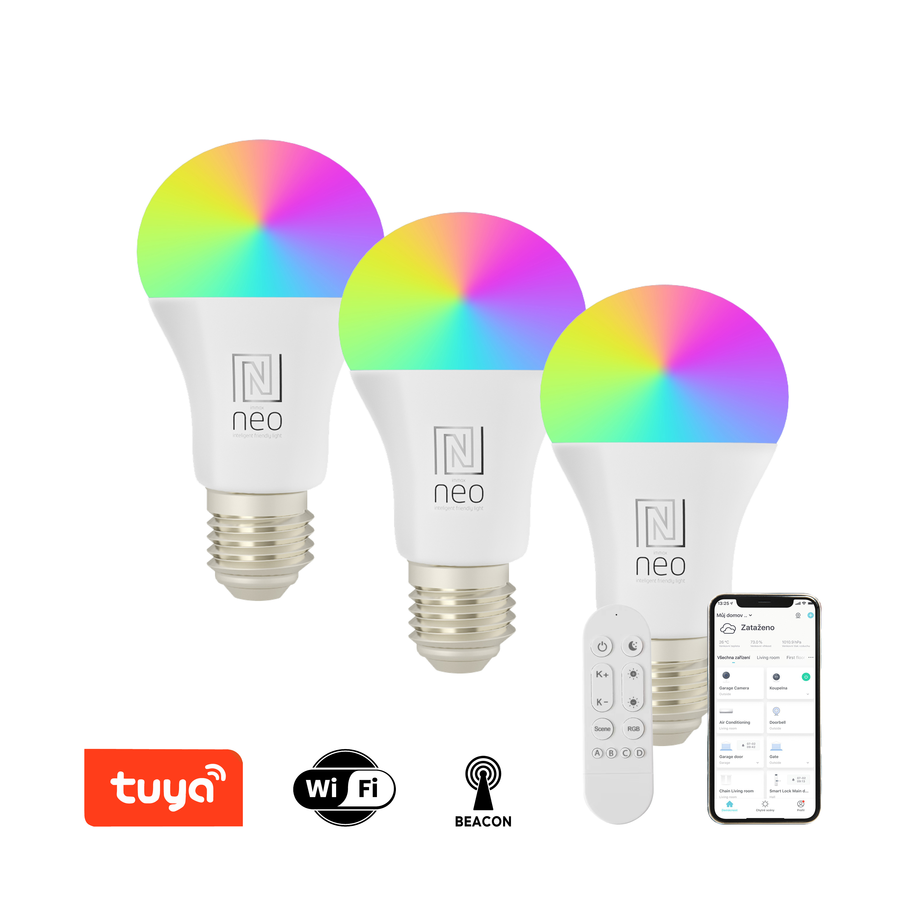 Immax NEO LITE sada 3x Smart žárovka LED E27 11W RGB+CCT,stmívatelná, WiFi,Beacon,DO
