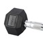 Profesionální, šestihranná činka pro použití jak doma, tak v posilovně. Takzvané "hexa činky" patří k základní výbavě každého fitka, posilovny a klubu. Jednoruční činka je základním stavebním prvkem silového tréninku. Šestihranný tvar zamezuje odkutálení činky po jejím odložení a zároveň umožňuje použití páru činek jako stálky (podpěry pro kliky) pro provádění hlubokých kliků. Tvrdý, gumový povrch chrání činku před poškozením a zajišťuje, že činky během tréninku nevydávají obtěžující, cinkavé zvuky. Chromovaný úchop je opatřen rádlováním pro jistější držení. Označení hmotnosti v kilogramech je plastické, takže i po mnoha letech aktivního používání lze jasně poznat, kolik konkrétní činka váží.