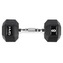 Profesionální, šestihranná činka pro použití jak doma, tak v posilovně. Takzvané "hexa činky" patří k základní výbavě každého fitka, posilovny a klubu. Jednoruční činka je základním stavebním prvkem silového tréninku. Šestihranný tvar zamezuje odkutálení činky po jejím odložení a zároveň umožňuje použití páru činek jako stálky (podpěry pro kliky) pro provádění hlubokých kliků. Tvrdý, gumový povrch chrání činku před poškozením a zajišťuje, že činky během tréninku nevydávají obtěžující, cinkavé zvuky. Chromovaný úchop je opatřen rádlováním pro jistější držení. Označení hmotnosti v kilogramech a logo výrobce je označeno pěnovým štítkem.