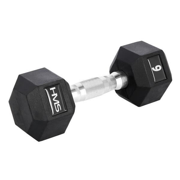 Profesionální, šestihranná činka pro použití jak doma, tak v posilovně. Takzvané "hexa činky" patří k základní výbavě každého fitka, posilovny a klubu. Jednoruční činka je základním stavebním prvkem silového tréninku. Šestihranný tvar zamezuje odkutálení činky po jejím odložení a zároveň umožňuje použití páru činek jako stálky (podpěry pro kliky) pro provádění hlubokých kliků. Tvrdý, gumový povrch chrání činku před poškozením a zajišťuje, že činky během tréninku nevydávají obtěžující, cinkavé zvuky. Chromovaný úchop je opatřen rádlováním pro jistější držení. Označení hmotnosti v kilogramech a logo výrobce je označeno pěnovým štítkem.