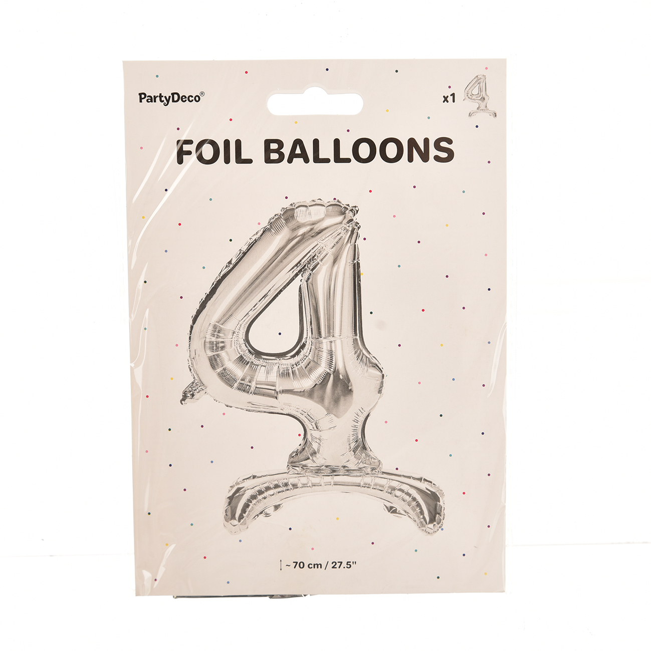 Balónek fóliový číslo 4 stříbrný stojící 70 cm