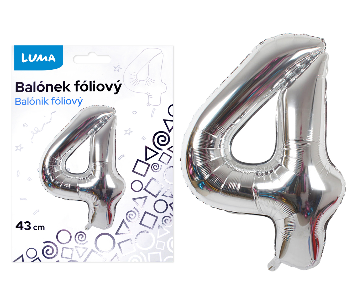 Balónek foliový č. 4 STŘÍBRNÝ 40cm LUMA
