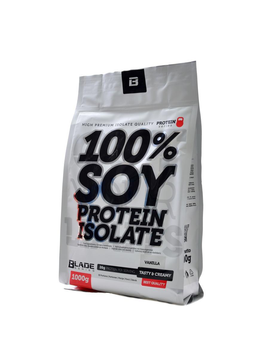 100% SOY PROTEIN ISOLATE je čistý izolát sójových bílkovin. Tento produkt je doporučen pro lidi, kteří chtějí obohatit svoji stravu o plnohodnotnou, dobře vstřebatelnou bílkovinu. Je to produkt s velmi vysokým obsahem bílkovin a omezeným množstvím sacharidů, tuků, cholesterolu a laktózy v dávce. Sójový proteinový izolát je ideální pro budování kvalitní svalové hmoty a snížení tělesného tuku. SPI od Hitec nutrition obsahuje sojový isolát nejvyšší kvality, který je výborně ochucený, dobře rozpustný a jistě bude vyhovovat pro doplnění bílkovin nejen vegetariánům a veganům, ale uspokojí i sportovce, kteří potřebují vysokoprocentní bílkovinový přípravek s minimem sacharidů a tuků za velmi příznivou cenu. Suroviny v řadě BS Blade podléhají kontrole kvality a je dbáno zejména na kvalitu a jednoduchost přípravků v poměru k ceně. Sojový protein je speciální isolát , který je produkován, aniž by byly použity geneticky modifikované sójové boby. Slouží jako alternativa ke zdrojům živočišných bílkovin. Rostlinné sójové bílkoviny jsou ideální pro vegetariány a vegany, ale i pro lidi, kteří trpí nesnášenlivostí laktózy. Soy protein poskytuje základní a non-esenciální aminokyseliny ve vyváženém poměru. Rostlinný protein pomáhá budovat a udržovat svalovou hmotu a podporuje udržení zdravých kostí. Kromě vysokého obsahu bílkovin zaručuje i obsah několika esenciálních mikronutrientů, jako například vápník, železo a draslík. Sójový protein má perfektní aminokyselinový profil a také vysoký obsah Argininu a Glutaminu. Často je označován jako neplnohodnotný ve srovnání se syrovátkovým proteinem. Představuje však kompletní zdroj bílkovin a jeho aminokyselinový profil se nejvíce přibližuje živočišnému zdroji bílkovin. Tráví se pomaleji než syrovátkový protein, ale rychleji než kasein. Sójový protein izolát má výbornou biologickou využitelnost. Dostatečný příjem bílkovin je důležitý nejen pro sportovce, vegany, vegetariány. Osoby, které nemohou konzumovat živočišné bílkoviny, mohou mít problémy přijmout potřebné množství bílkovin. Sójový izolát představuje ideální možnost doplnění příjmu bílkovin. Vysoký obsah bílkovin, esenciálních a neesenciálních aminokyselin v sójovém izolátu pomáhá zvyšovat proteinovou syntézu a obnovu a budování nových svalů. Vyšší obsah argininu podporuje vazodilataci a pomáhá regeneraci prostřednictvím lepšího prokrvení. Může také zvýšit hladinu oxidu dusnatého (NO). Užívání sójového izolátu snižuje špatný (LDL) cholesterol.