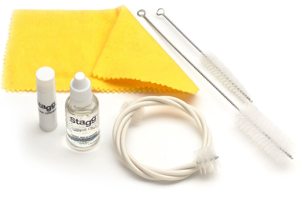Tato praktická sada obsahuje speciální olej na ventily a olej na snížce, které zajistí hladký chod a ochranu mechanických částí vašeho nástroje. Dále součástí jsou různé kartáčky, včetně ohebného kartáčku na čištění těžko dostupných míst, kartáčku na nátrubek a kartáčku na pouzdra ventilů. Pro poslední úpravu pak disponuje i čistícím hadříkem, kterým jednoduše odstraníte zbytky nečistot a otisky prstů.
