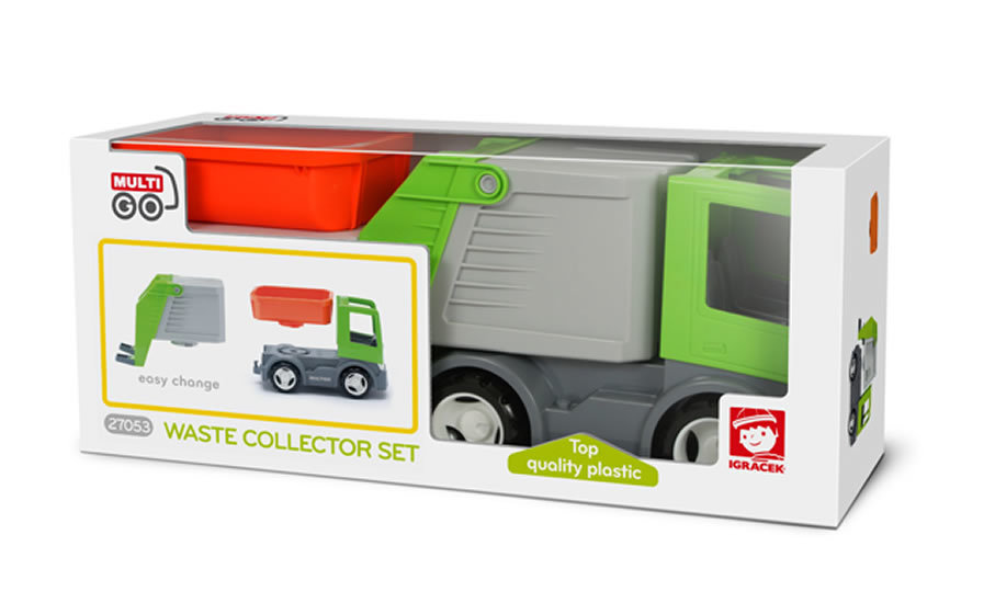 Igráček MULTIGO 1+2 s motivem popelářského auta a eko balení je praktickým a ekonomickým doplňkem každé dětské herny. Auto je vybavené propracovanou popelářskou korbičkou s dvěma možnostmi vyklápění, která umožní dětem různorodé způsoby hraní a manipulace. Součástí je i malá, odnímatelná popelnice, kterou může Igráček snadno uchopit a odvážet odpad, což dodává hře na autentičnosti. Igráček může být umístěn v kabině auta nebo na popelářské stupačce korbičky, což nabízí ještě větší variabilitu při hraní.